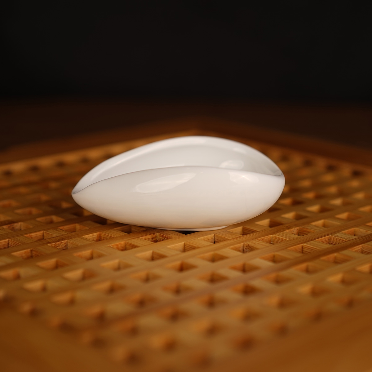 Ча Хэ – это, так называемая «чайная коробочка» — ёмкость, благодаря которой , мы знакомимся с чаем: визуально и через ароматом. Чахэ фарфоровое, поэтому запахи не цепляет; комфортно лежит в руках и удобно «слушать» аромат. На стенках чахэ изображён распускающийся цветок синего цвета.